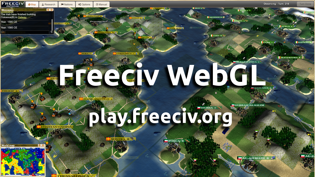 Freeciv is a Free and Open Source empire-building strategy game inspired by the history of human civilization. The game commences in prehistory and your mission is to lead your tribe from the Stone Age to the Space Age. Freeciv can be played online in your web-browser for free.
